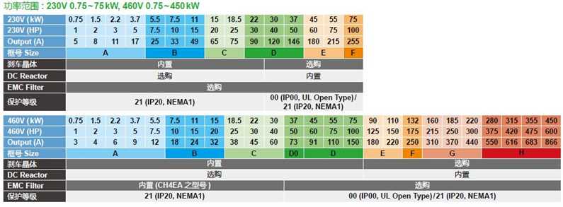 超重載型過載能力:額定輸出電流 150 % 60s、200 % 3s