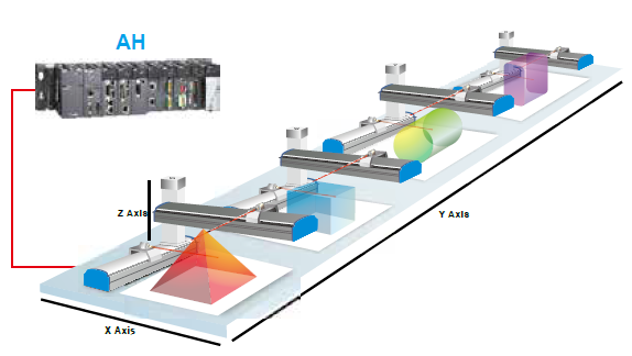 AH500的運動控制功能,可實現(xiàn)任意三軸直線插補、任意兩軸圓弧插補、及任意三軸螺旋插補與連續(xù)插補功能,透過臺達(dá)DMCNET高速通訊網(wǎng)絡(luò)架構(gòu),更可達(dá)到1ms的指令周期內(nèi)12軸同動或4組3軸同動插補功能。無論是復(fù)雜的過程控制或是精密的運動控制需求,都能透過AH500來實現(xiàn),有效應(yīng)用于各種產(chǎn)業(yè)機臺,如建材機,經(jīng)編機,食品包裝機等等。